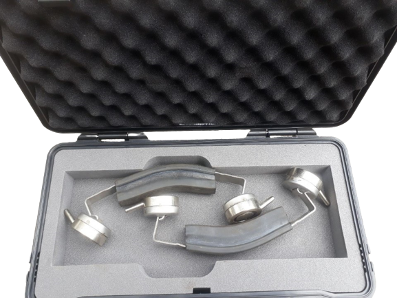 GE 초음파 유량계 측정 작업시 Transducer를 부착시키기위해 양끝에 영구 자석이 달린 장비로서 유량 및 유속 측정 진행 중 Transducer가 흘러내리거나 움직임으로 일어나는 측정 결함을 방지해주는 중요한 역할을 하는 Magnetic Chuck (MC-S) 제품입니다.