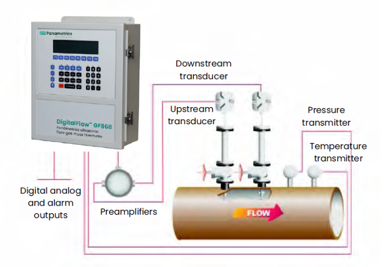 기체용 초음파 유량계로, 기체의 유량을 초음파를 통해 측정하는 방식입니다.