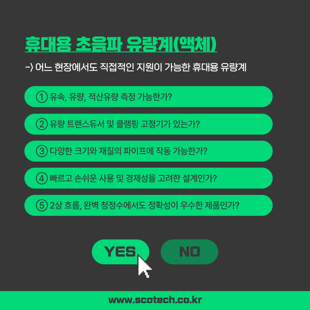 - 어느 현장에서도 직접적인 지원이 가능한 휴대용 유량계