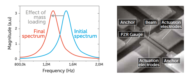 - NGD: 나노 중력 측정 검출기는 나노 스케일의 질량 변화를 감지하여 분석을 수행합니다. 가스 샘플이 표면에 흡착되면, 이로 인해 구조체의 질량이 변화하게 되고 이 변화가 공진 주파수의 변화로 감지됩니다.