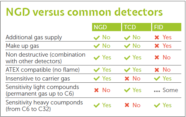 - μ TCD 미열 전도도 검출기 또는 APIX의 고유한 NGD 검출기를 사용할 수 있습니다.