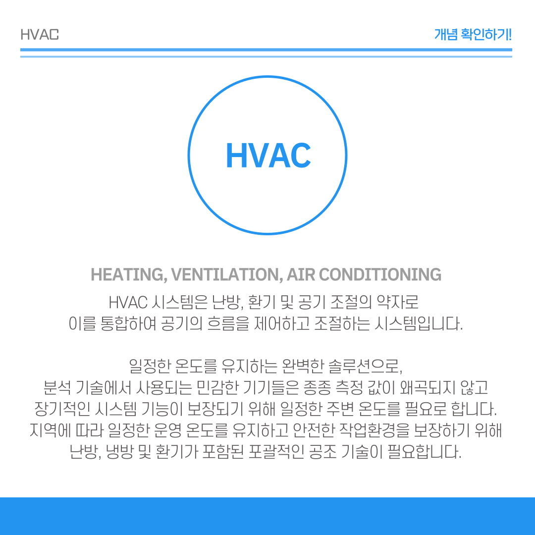 따라서 안전하고 정확한 분석 작업환경을 보장하기 위해서는 난방, 냉방, 환기가 포함된 포괄적인 공조 기술이 필요하게 됩니다.