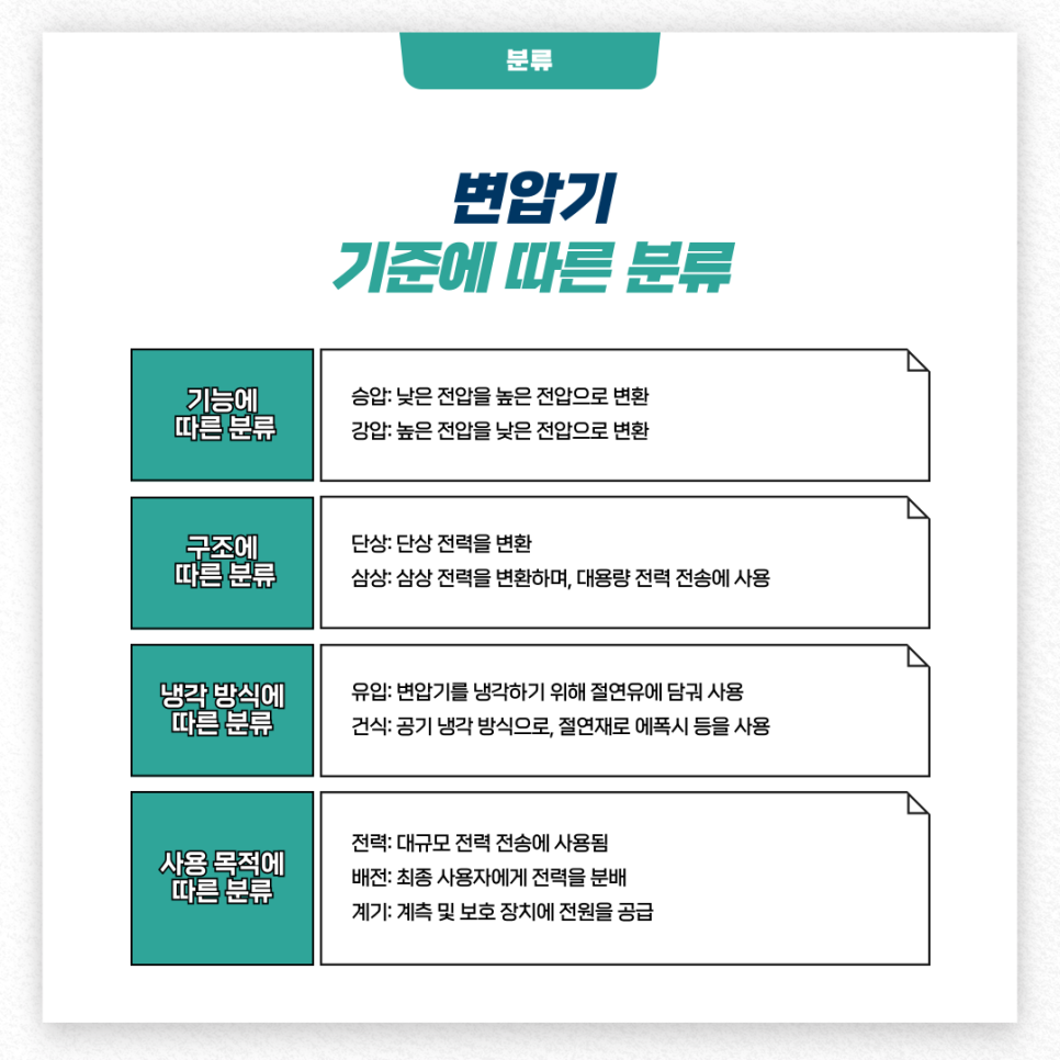 변압기의 기준에 따른 분류입니다.