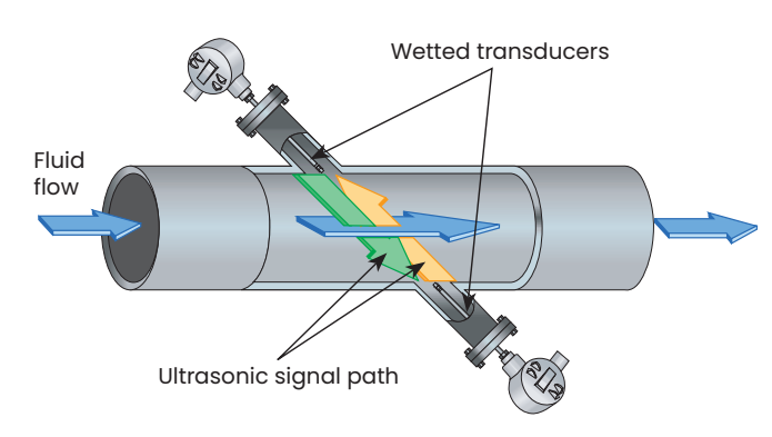 스팀용 초음파 유량계로, 스팀 질량 유량을 측정하는 방식입니다.