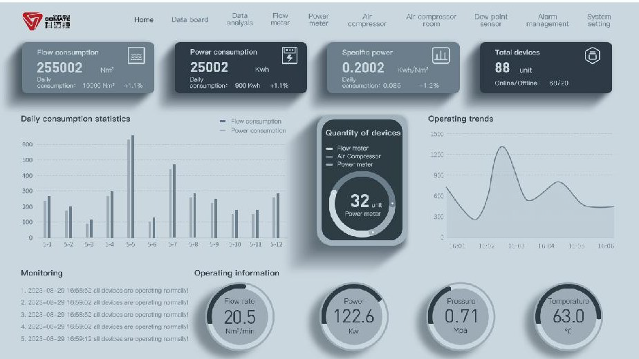 - 다중 측정 장비 및 다중 공기 압축기, 건조기 등의 장비 데이터 동시 액세스 지원합니다.