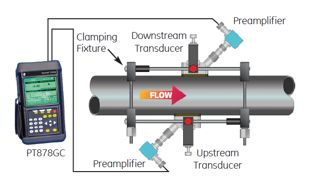 에스코텍에서 PANAMETRICS사 대리하여 판매하고 있는 휴대용 초음파 기체 유량계입니다.