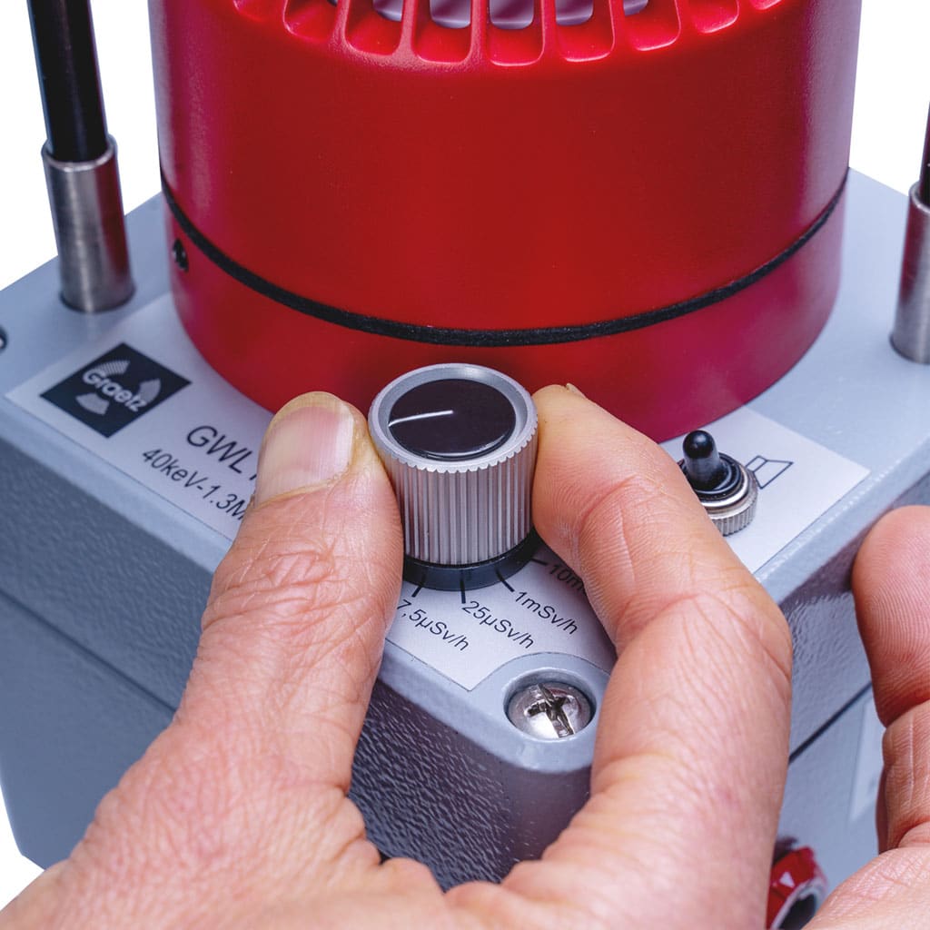 GRAETZ GWL10m 감마선 경고등은 사람이 위험 영역에 접근할 때 음향 경보를 트리거하는 옵션 동작 감지기와 함께 사용할 수 있다.