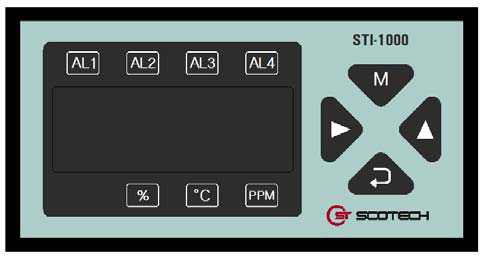 에스코텍에서 직접 생산하여 판매하고 있는 디지털 인디게이터 STI-1000 제품입니다. STI-1000 제품의 주요 특징에 대해 안내드립니다. Multi 입력으로 다양한 신호를 받을 수 있습니다. 고성능, 고정도의 16bit A/D Converter를 사용함으로써 신뢰성이 향상 되었습니다. 다양한 Peak Hold 기능을 내장하고 있어 여러 가지 용도로 사용가능 합니다. 경보출력을 위해 Alarm 4point를 장착 할 수 있으며 개별적으로 상한 또는 하한 Alarm으로 설정 가능하고 Dead band도 설정 가능합니다. Free Voltage (AC 85~265V, 45~65Hz)입니다. 부품 이름 치수 및 패널 절단 제품 사양 입력의 종류 (standard 입력, ..